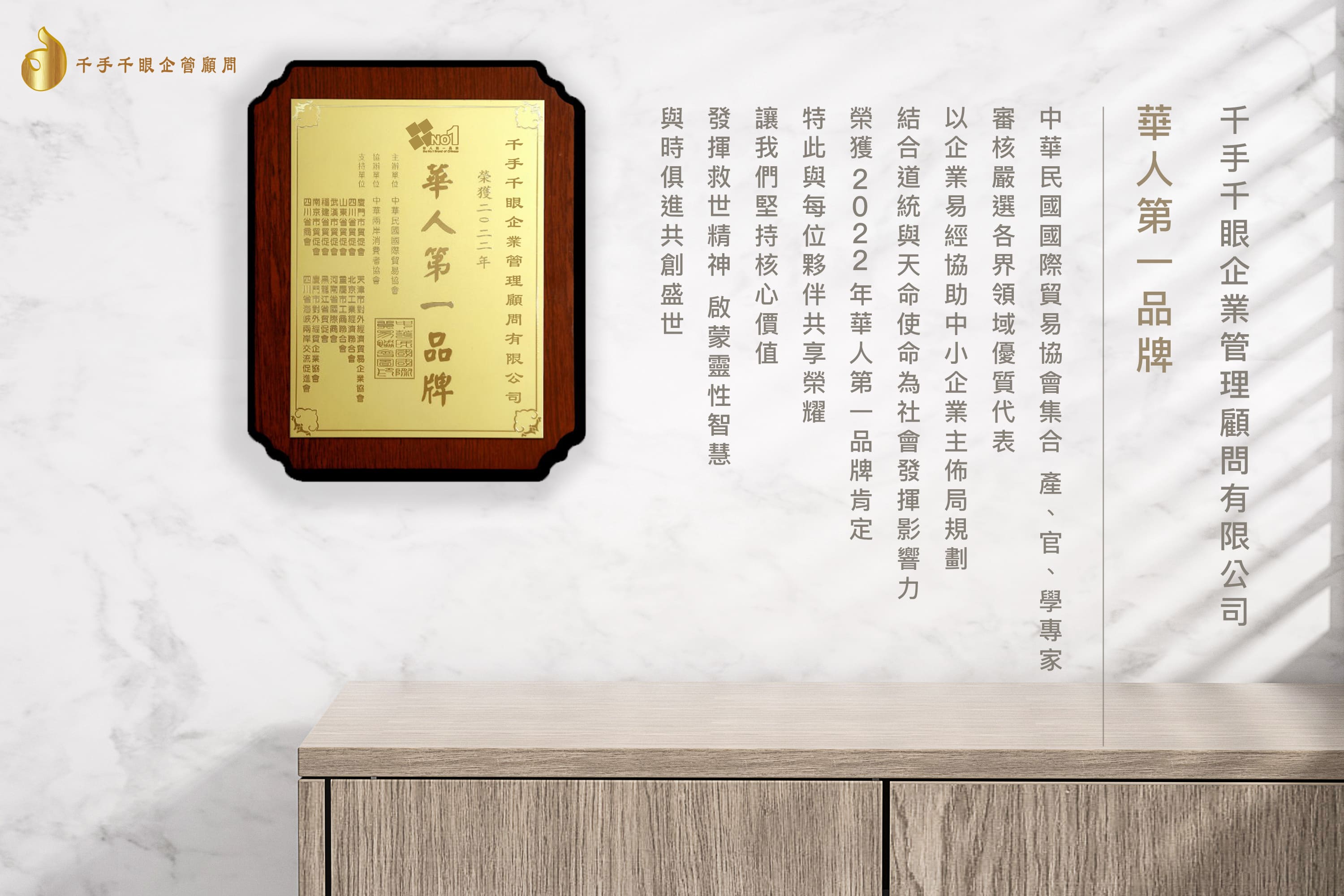 恭賀千手千眼企業管理顧問有限公司榮獲「華人第一品牌獎項」!